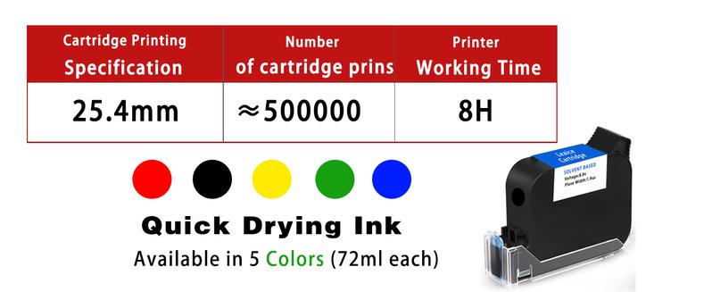 - Waterproof Fast Drying Ink: Equipped with 72ml original ink cartridge, our portable inkjet printer delivers clear, waterproof, and long-lasting prints. (Warm Tips: When the hand held inkjet printer is not used for more than 15 minutes, please remove the ink cartridge in time and cover the ink cartridge protective cover to prevent the ink cartridge from drying and clogging the nozzle)