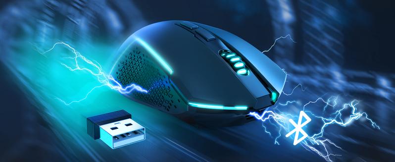 Redragon FIRST 3-mode wireless gaming mouse, BT/2.4Ghz/Wired 3 ways to get connected for a next-level experience.